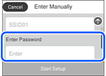 If you entered an SSID manually, first set Password to Available then select the Enter Password field.