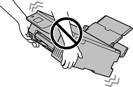 Saat dimiringkan, pastikan printer tidak terguncang karena dapat menyebabkan kebocoran tinta atau kerusakan pada printer.