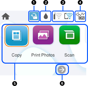 Menunjukkan bahwa Mode Senyap diatur untuk printer. Jika fitur ini diaktifkan, suara bising yang ditimbulkan oleh pengoperasian printer berkurang, tetapi kecepatan pencetakan dapat melambat. Namun, suara bising mungkin dapat juga tidak berkurang, tergantung jenis kertas dan kualitas cetak yang dipilih. Pilih untuk mengubah pengaturan. |