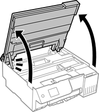 Abra a unidade do scanner com ambas as mãos até que bloqueie.
