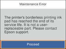 Keď sa zobrazí nasledujúca obrazovka, súčasť nemôžu meniť používatelia. Kontaktujte podporu spoločnosti Epson.