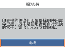 顯示下列畫面時,使用者不可更換該部分。請洽詢 Epson 支援服務。