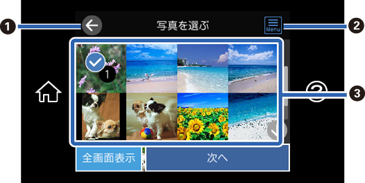 写真選択(一覧表示)画面の使い方