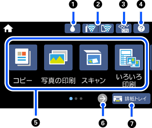 [ヘルプ]画面を表示します。困ったときの対処方法やプリンターの基本操作手順が確認できます。 |