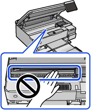Nepieskarieties vadības paneļa pogām, kamēr roka atrodas printerī. Ja printeris sāk darboties, tas var radīt traumu. Uzmanieties un nepieskarieties izvirzītajām detaļām, lai izvairītos no traumas.
