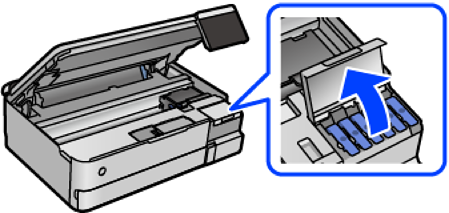 Jeśli tusz nie zacznie wpływać do zbiornika, wyjmij butelkę z tuszem, a następnie włóż ją ponownie. Nie wyciągaj ani nie wkładaj ponownie butelki z tuszem, gdy poziom tuszu sięgnie górnej linii. W przeciwnym razie spowoduje to wyciek tuszu.