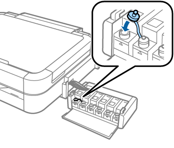 3  拧下顶部盖,取下墨瓶盖,取下瓶口上的封条,然后再盖紧墨瓶盖。