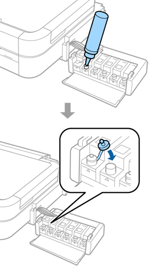 4  将墨瓶中的墨水全部注入到与墨瓶颜色匹配的墨仓中。