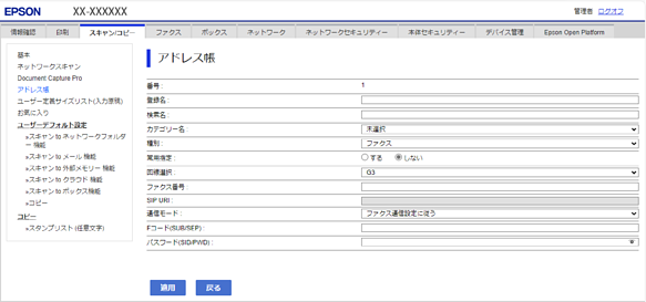 チェックを付けると登録したアドレスを常用にします。 常用に設定すると、ファクスやスキャンのトップ画面に表示され、アドレス帳を開かなくても宛先を指定できるようになります。 |