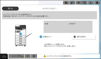 メンテナンスボックス交換のメッセージが表示されたら、画面の指示に従って交換してください。
