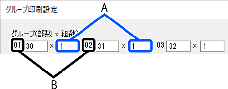 [グループ(部数×組数)]で部数と組数を設定します。