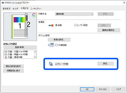 [グループ印刷]を選択して[設定]をクリックします。
