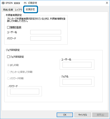管理者によってプリンターの使用が制限されている場合は、プリンタードライバーに許可されているユーザー名とパスワードを登録すると印刷できます。ログオン情報はプリンターの管理者に確認してください。