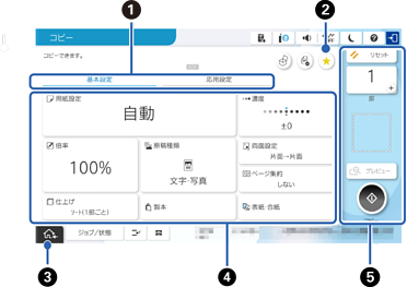 設定項目の一覧をタブで切り替えます。[基本設定]タブでは、よく使われる設定項目が表示されます。[応用設定]タブには、必要に応じて設定する項目が表示されます。 |