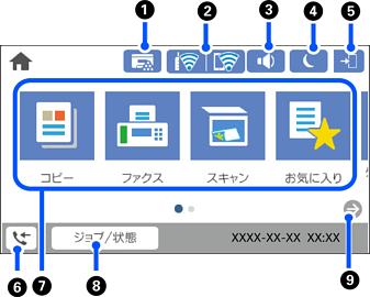 ネットワークの接続状態を表示します。詳しくは以下を参照してください。 |