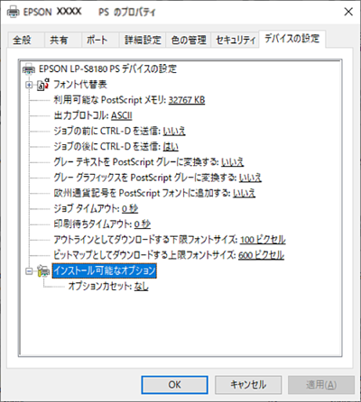 [デスクトップ]-[設定]-[コントロールパネル]-[ハードウェアとサウンド]の[デバイスとプリンターの表示]を選択します。お使いのプリンターを右クリックまたは長押しし、[プリンターのプロパティ]を選択します。[デバイスの設定]タブの[インストール可能なオプション]でオプション装置を選択します。