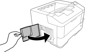新しい廃トナーボックスのキャップを開けます。
