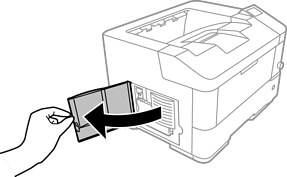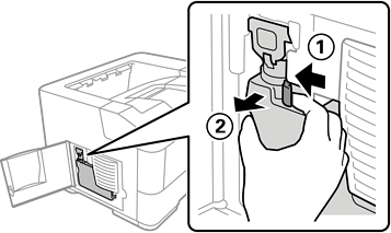 ツマミを持って、廃トナーボックスを引き抜きます。