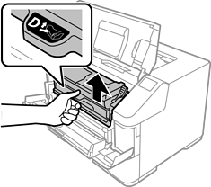 D部を持ったまま、斜め上方向に現像ユニットを引き出します。
