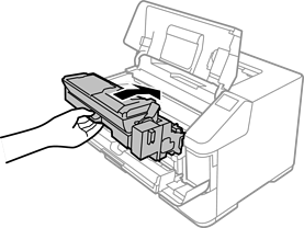 内部の転写ローラー(黒色)には触れないでください。印刷品質が低下する原因になります。