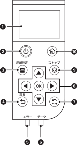 データ処理中に点滅します。 待機中のジョブがあると点灯します。 |
