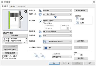 各項目の詳細は、プリンタードライバーのメニュー説明をご覧ください。