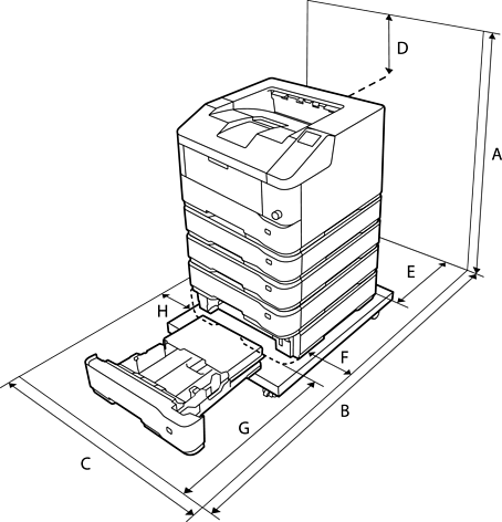* :フェイスアップ排紙トレイを取り付けた場合は500 mm