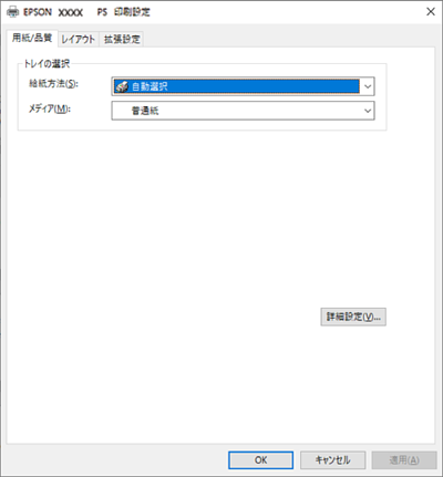 4. プロパティ](または[詳細設定]など)をクリックして、プリンタードライバー(詳細な印刷設定)の画面を表示します。
