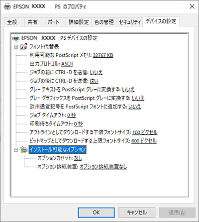 スタートボタンをクリックして[コントロールパネル]-[プリンタとその他のハードウェア]-[プリンタとFAX]の順に選択します。お使いのプリンターを右クリックして[プロパティ]を選択します。[デバイスの設定]タブの[インストール可能なオプション]でオプション装置を選択します。