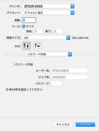 印刷ジョブにパスワードを設定して、プリンターの操作パネルからパスワードが入力されるまで印刷できないようにします。