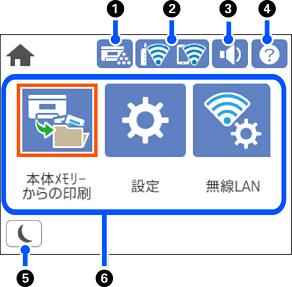 ヘルプ画面を表示します。困ったときの対処方法やプリンターの基本操作手順が確認できます。 |