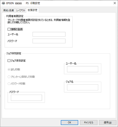 管理者によってプリンターの使用が制限されている場合は、プリンタードライバーに許可されているユーザー名とパスワードを登録すると印刷できます。ログオン情報はプリンターの管理者に確認してください。
