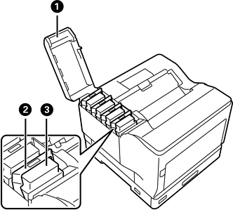 消耗品を交換するときや、内部に詰まった用紙を取り除くときに開けます。 |