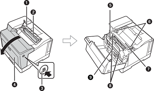 内部に詰まった用紙を取り除くときに開けます。 |