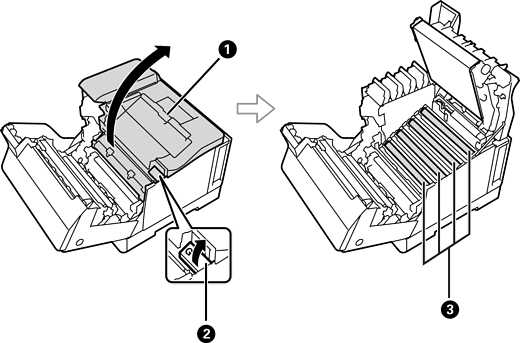 詰まった用紙を取り除くときに引き上げます。 |