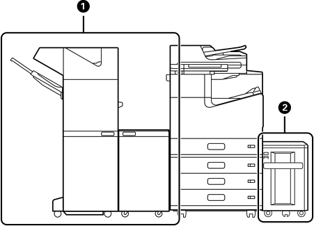 印刷物のソートやステープルをして排紙します。パンチユニットを装着すると、パンチ穴も開けられます。 |