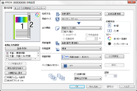 各項目の詳細は、プリンタードライバーのメニュー説明をご覧ください。