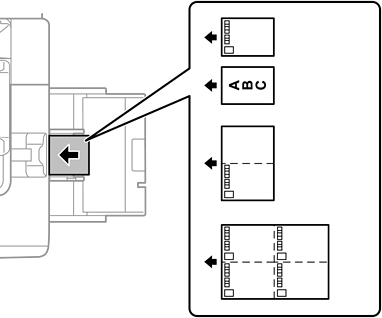 印刷する面を上にして手差しトレイの中央にセットし、用紙ガイドをハガキに合わせてください。