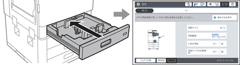用紙サイズと種類の設定画面は、操作パネルの[用紙設定]を選択しても表示できます。