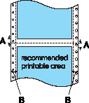 For continuous paper, printing starts at the arrow mark on the printer. The unprintable area is to the left of the arrow mark.