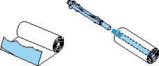 Cut the leading edge of the roll paper straight across. Slide the roll paper holder shaft through the center of the paper roll.