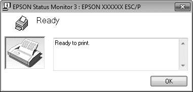 It might not be possible to retrieve the printer status during printing. In this situation, click the EPSON Status Monitor 3 button in the Utility tab, and use the printer with the status window left open.