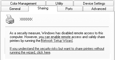 For Windows XP, if the following menu appears, click either Network Setup Wizard or If you understand the security risks but want to share printers without running the wizard, click here.