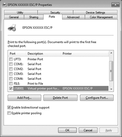 When sharing the printer, be sure to set EPSON Status Monitor 3 so that the shared printer can be monitored on the printer server and clients. See Setting up EPSON Status Monitor 3.