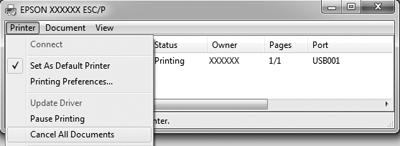 When canceling all printing documents, select Cancel All Documents on the Printer menu.