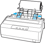 Install the paper guide. Slide the left edge guide to the center until it stops at the guide mark. Then slide the right edge guide to the opposite guide mark.