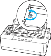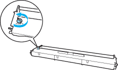 Turn the ribbon-tightening knob in the direction of the arrow to remove any slack from the ribbon so it is easier to install.