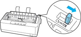 Make sure the printer is turned off. Remove the paper guide and place the paper release lever in the continuous paper position.