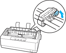 Make sure the Tear Off (Font) light is flashing (the paper is at the current tear-off position). You may need to press the Tear Off (Font) button to advance the paper to the tear-off position.