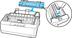 To feed continuous paper to the standby position where you can remove the paper, press the Load/Eject button. Then open the sprocket covers of the tractor and remove the paper.
